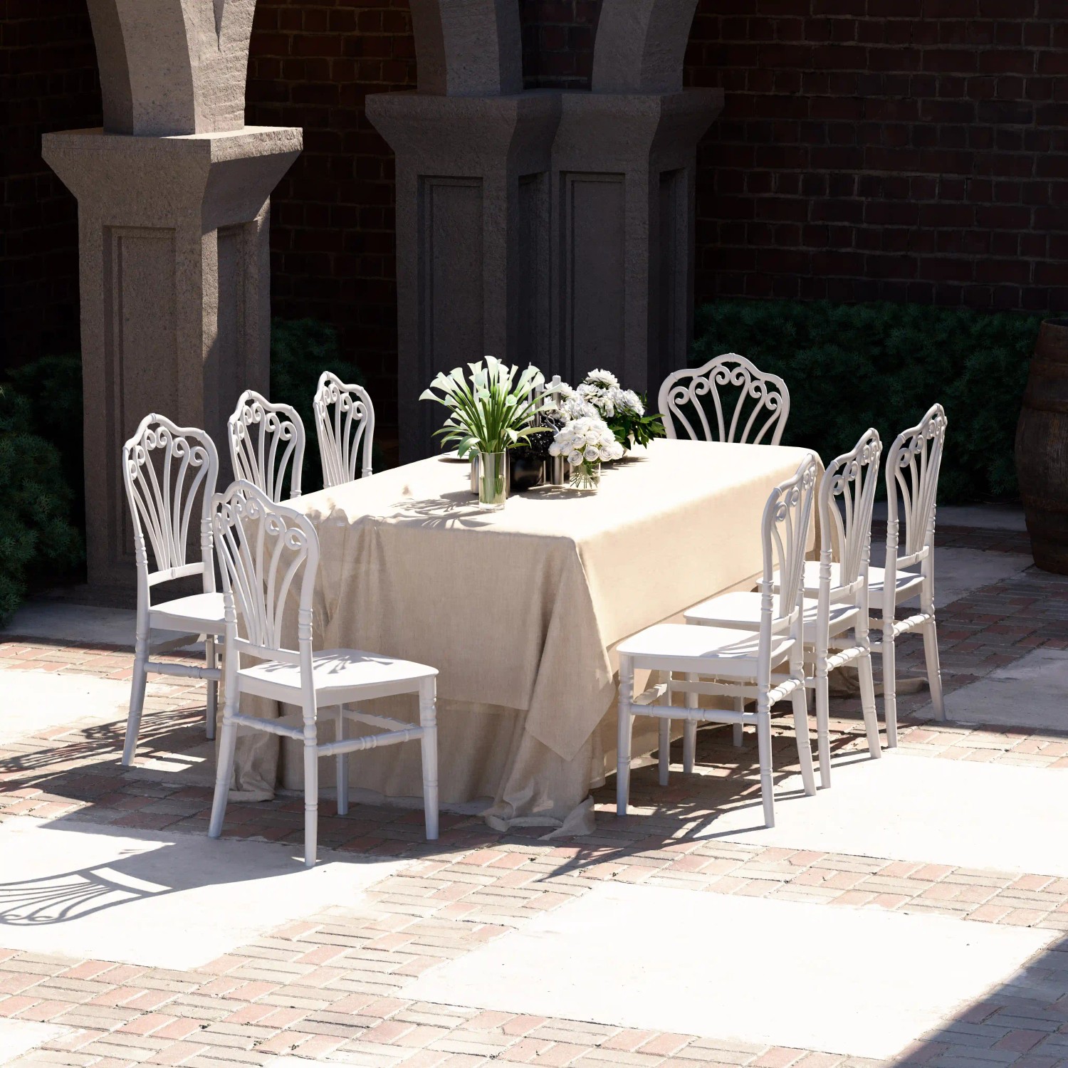 Flora sandalye, görüntüsünün hafifliğini ve dokunulmazlığını üretmek için temel tasarımı olağanüstü sağlam bir yapıyla birleştirir. Polipropilen malzeden gaz destekli enjeksiyon teknolojisi ile üretilmiştir. Düğün salonlarınızda, organizasyon alanlarınızda veya otel balo salonunuzda size daha fazla alan sağlayan 11 adede kadar istiflenebilir. Flora inanılmaz derecede dayanıklı, esnektir ve hem iç hem de dış mekan kullanımı için uygundur.
